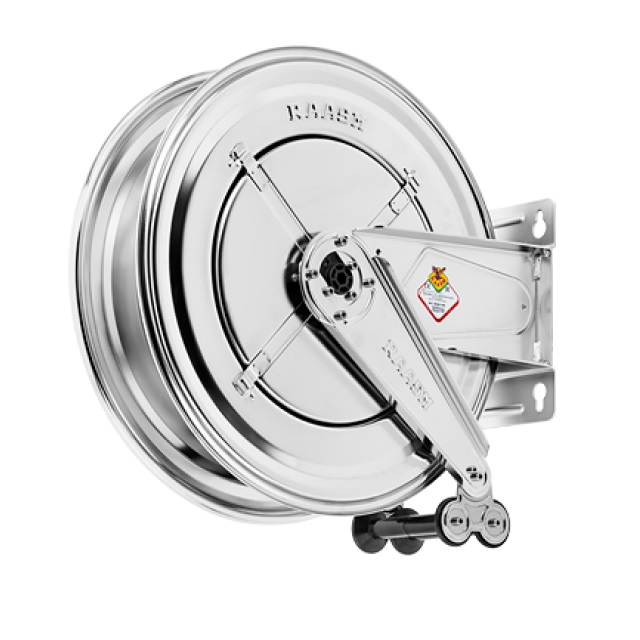 Naviják S.422 je otočný v konzole. Výsuvná hadice má při návratu zpět do navijáku každých 60 cm automatickou stopku, která zabraňuje samovolnému návratu zpět. Hadice se může protáčet v rychlospojce a nepřekrucuje se. Typ hadice černá hygienická hadice.Naviják je též vhodný i do prostředí ATEX (zóna 1 a 21).8422.201-100B-SS-G1/2 - Otočný naviják hadice, nerezová ocel AISI 304, série S.430, pro horkou vodu, do 100 bar, s černou gumovou hadicí 10 m, ø 1/2".8422.202-100B-SS-G1/2 - Otočný naviják hadice, nerezová ocel AISI 304, série S.430, pro horkou vodu, do 100 bar, s černou gumovou hadicí 15 m, ø 1/2".