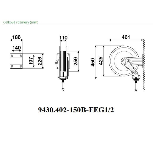 Naviják má automatickou stopku, která zabraňuje samovolnému návratu hadice zpět. Hadice se může protáčet v rychlospojce a nepřekrucuje se!Pro splnění podmínky normy ATEX je zapotřebí použití schválených koncovek, hadice, aby celé zařízení bylo kompaktně elektricky vodivé jako jeden celek. Veškeré montáže musí být provedeny odborně.Naviják je též vhodný i do prostředí ATEX (zóna 1 a 21). Naviják 9430 je vhodný do ATEX (zóna 2 a 22).Naviják bez hadice na základě požadavku osadíme hadicí s koncovkami.8430.400-150B-FEG1/2 - Pevný naviják bez hadice, série S.430, na olej a nemrznoucí směsi, do 150 bar, bez hadice. Vstup a výstup G 1/2"(f).8430.401-150B-FEG1/2 - Pevný naviják s hadicí, Série S.430, na olej a nemrznoucí směsi, do 150 bar, s černou gumovou hadicí 10 m, ø 1/2".9430.402-150B-FEG1/2 - Pevný naviják s hadicí z ABS a držáky z lakované oceli, série S.430, na olej a nemrznoucí směsi, do 150 bar, s černou gumovou hadicí 15 m, ø 1/2".8430.4000-150B-FE-G1/2 - Pevný naviják bez hadice, série S.430, na olej, 150 bar, bez hadice. Uspořádání dvojitého vstupu a výstupu. Vstup G 1/2"(f), výstup G 3/8" G (m).