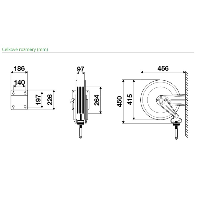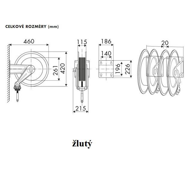 Tento naviják má vstupní závity G 3/8", bez hadice má výstup G 1/2", s hadicemi šroubení G 1/4".Naviják určený pro výsuv hadice, která má každých 60 cm automatickou stopku, která zabraňuje samovolnému návratu hadice zpět.Naviják bez hadice na základě požadavku osadíme hadicí s koncovkami.Naviják je možné osadit 3/8" hydraulickou hadicí v délce až 15 m. Pro větší délku 20 až 25 m je potřeba řada S530.Navijáky jsou dodávány o originálním krabicovém balení, včetně otočných závěsů a návodu na montáž.8430.500-400B-FE-G3/8 - Pevný naviják bez hadice, série S.430, na tuk, do 400 bar, bez hadice. Vstup G 3/8 "(f) - výstup G 1/2" (f).8430.501-400B-FE-G3/8 - Pevný naviják s hadicí, série S.430, na tuk, 400 bar, s černou gumovou hadicí 12 m, ø 1/4".8430.506-400B-FE-G3/8 - Pevný naviják s hadicí, série S.430, na tuk, do 400 bar, s černou gumovou hadicí 15 m, ø 1/4".430.56-400B-FE-G3/8 - Pevný naviják s hadicí série S.430, na tuk, do 400 bar, s černou gumovou hadicí 15 m, ø 3/8".