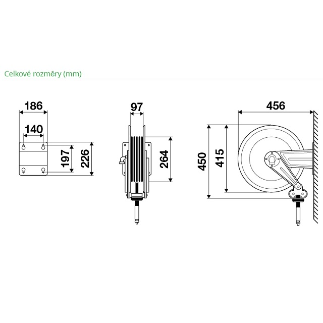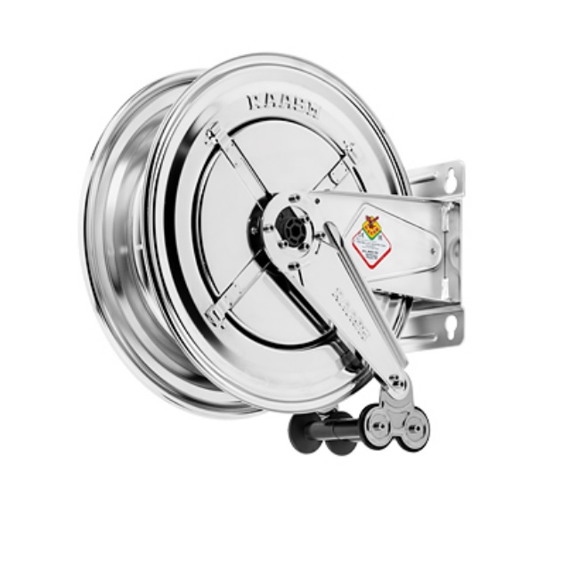 Naviják má výsuvnou hadici, která má každých 60 cm automatickou stopku, která zabraňuje samovolnému návratu hadice zpět.Hadice se může protáčet v rychlospojce a nepřekrucuje se.Naviják bez hadice na základě požadavku osadíme hadicí s koncovkami.Naviják je též vhodný i do prostředí ATEX (zóna 1 a 21).8434.300-200B-SSG3/8 - Pevný naviják z nerezové oceli AISI 304, série S.430, pro horkou vodu, do 200 bar, bez hadice. Vstup G 3/8" (f), výstup G 1/2" (f).