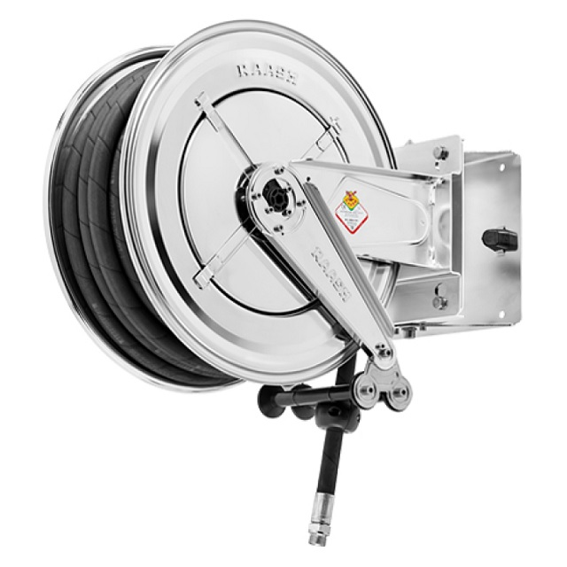 Naviják, jehož součástí je otočný podstavec je odlišen od pevných navijáků tím, že se natáčí směrem tažení hadice o úhly +/ - 55°. Stejně jako u pevných navijáků má radiálně otočné rameno umožńující natáčení směru hadice nahoru i dolů. Tím je dokonalý v navíjení hadice ve všech směrech. Hadice se může protáčet v rychlospojce a nepřekrucuje se! Také tento naviják má navíjecí automatickou stopku na každých 60 cm, proti samovolnému navíjení hadice.Naviják bez hadice na základě požadavku osadíme hadicí s koncovkami.Naviják je vhodný i do ATEX prostředí (zóna 2 a 22).8552.100-20B-SS-G1 - Otočný naviják bez hadice, nerezová ocel AISI 304, séie S.540, pro vzduch-voda, 20 bar, bez hadice. Vstup a výstup G 1"(f).8541.101-20B-SS-G1 - Otočný naviják s hadicí, nerezová ocel AISI 304, série S.540, pro vzduch-voda, 20 bar, s černou gumovou hadicí 15 m, ø 3/4".8554.102-20B-SS-G1 - Otočný naviják s hadicí, nerezová ocel AISI 304, série S.550, pro vzduch-voda, 20 bar, s modrou gumovou hadicí 20 m, ø 3/4".