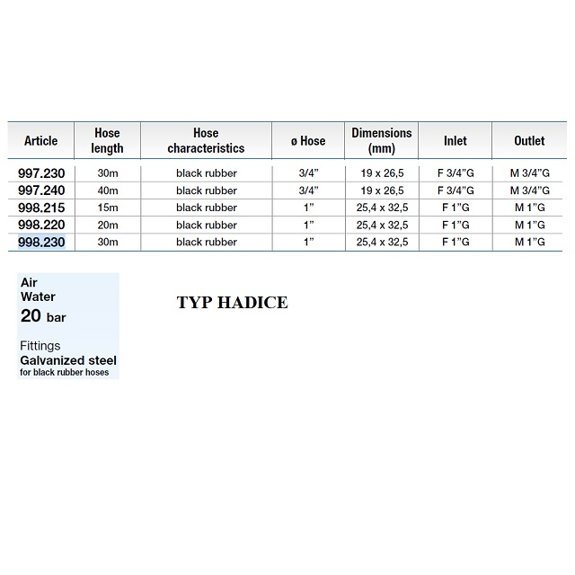 Varianty8562.100-20B-SS-G1; Provozní tlak (bar) 20, Vnitřní závit G 1", Vnější závit G 1", Hmotnost (kg) 40,5, Určeno na hadici [mm] G 1", Osazeno hadicí bez hadice