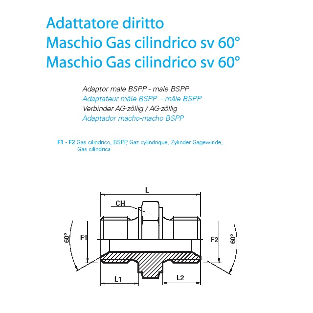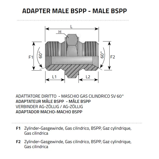 Dvojnipl GAS 60° vnitřní kužele, palcové závity