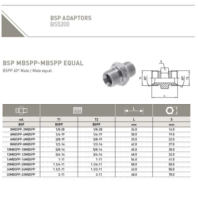 12MBSPP-20MBSPP; Celková délka (mm) L=56, Provozní tlak (bar) 220, Vnější závit 3/4"/5/4", Hmotnost (kg) 0,105, Šestihran 50