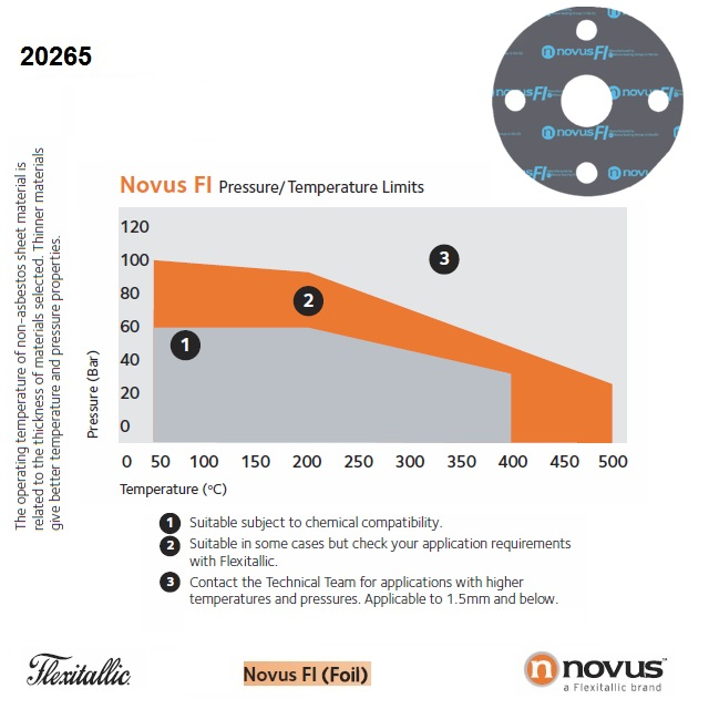 Novus FI je flexibilní grafito laminátový materiál zesílený nerezovou vložkou (316) o tloušťce 0,05 mm. Grafitová vrstva je vložena pomocí super tenké vrstvy lepidla bez chloridů.Vložka v robustním těsnícím materiálu má vynikající mechanickou pevnost a při řezání těsnění je plně kompaktní.Použití: Široká škála aplikací v chemickém, petrochemickém nebo ve všeobecném průmyslu zejména pro kompresorové přírubové těsnění, potrubní a lodní systémy. Výhody a přednosti těsnění: Široký rozsah provozních teplot při zachování flexitility, vynikající zachování napětí přírubového spoje např. u páry, stálost a těsnost těsnění ve spoji, snadné zpracování při výrobě těsnění.