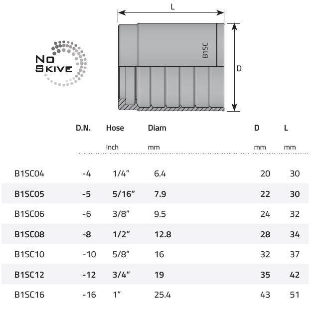 B1SC08; Celková délka (mm) 34, Průměr (mm) D=28, DN (mm) 12, Hmotnost (kg) 0,046, Velikost [modul] (-08), Určeno na hadici [mm] 12,1, Hadice d/D 1/2"