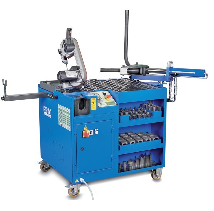 Toto zařízení, které se snadno používá a udržuje, je ideální pro ohýbání pevných trubek z nerezové oceli (AISI 316 TI) a uhlíkové oceli (ST 37.4) o průměru od 6 do 42 mm a maximální tloušťce 4 mm.Je vhodné i pro hromadnou výrobu.ROZMĚRY DxŠxV: 680x880x910 mm.VÝKON MOTORU: 1,1 kW (pracuje se 3 fázemi 400V/50 Hz).Olej do stroje je nutné doplnit 5 litrů viskozity jako HM46, dle norem DIN 51524-část 2 (HLP), ISO 11158 (HM).Lisovací matrice lze objednat dle Vaší výroby, viz artkl 54615, (orientace jsou vnější průměry ohýbaných trubek).
