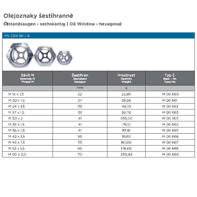 O1-M06660; Vnější závit M16x1,5, Hmotnost (kg) 0,023