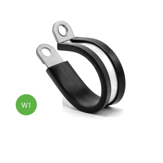 Úchytky jsou určeny pro držení hadic, trubek nebo kabeláže.Klipy s gumovou podšívkou DIN 3016 jsou vyrobeny z ocelových pásů lemovaných pryží EPDM. Tato gumová vložka zajišťuje bezpečnou těsnou montáž, chrání oblast aplikace a předchází možnému poškození způsobenému vibracemi. Otvory pro šrouby jsou vyztuženy kovovými deskami, které zaručují pevné uchopení. P-klipy se doporučují pro upevnění trubek, hadic a potrubí v mnoha různých aplikacích.Pryžová výstelka zachycuje chvění, chrání hadici proti prodření a znemožňuje zranění osoby ostrou hranou.Šíře úchytky je 12 mm. Kóta *D - označuje průměr otvoru pro připevňovací šroub v úchytce.Materiál: Galvanizovaná ocel (DIN 1.0529), Povrchová úprava: Šedobílá s EPDM Pryž.
