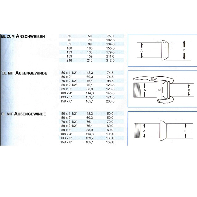 159/159VP; Provozní tlak (bar) 10, DN (mm) 159, Hmotnost (kg) 2,588, Určeno na hadici [mm] 159, Výška