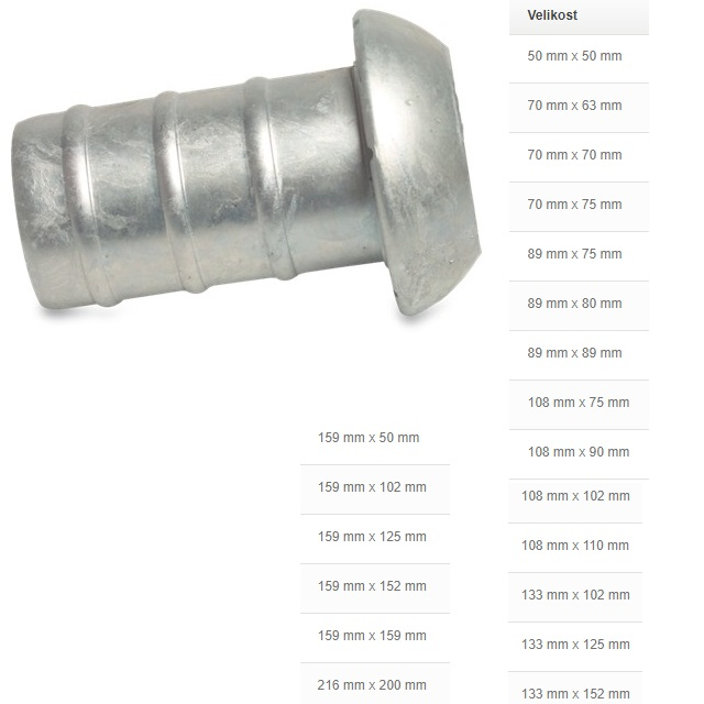 159/152VP; Provozní tlak (bar) 10, DN (mm) 159, Hmotnost (kg) 2,497, Určeno na hadici [mm] 152, Výška