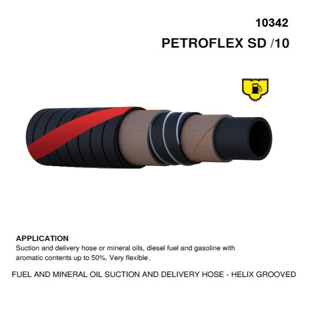 Sání a čerpání minerálních olejů, motorové nafty a paliv s obsahem aromatických látek do 50 %. Vysoce pevné syntetické tkaniny s vestavěnými kovovými spirálami a 1 měděným lankem pro uzemnění