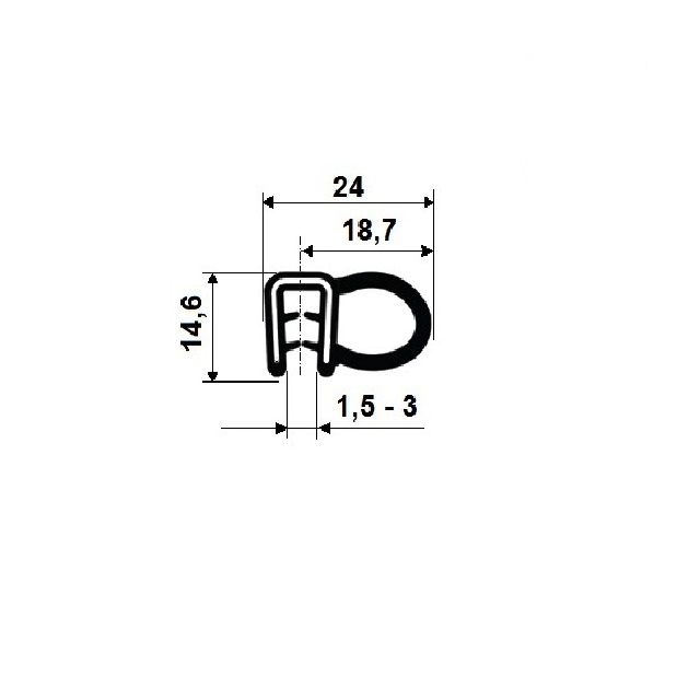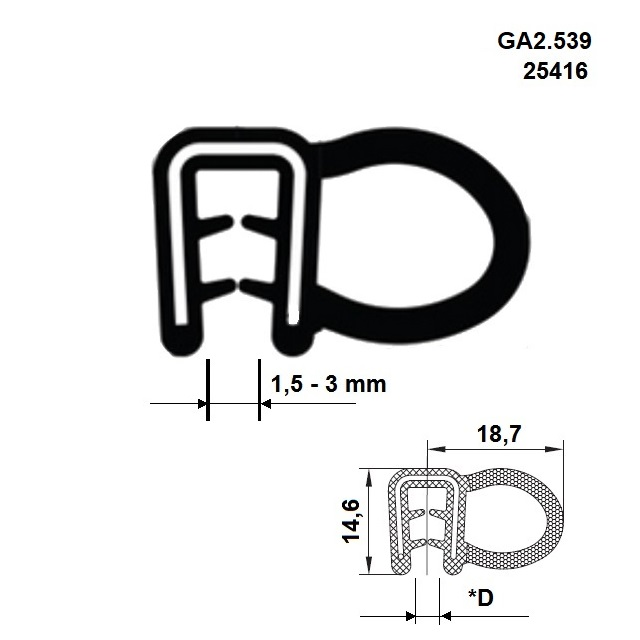 VariantyGA2.539/2.EPDM60-1; Šířka (mm) 24, Série A2 539, D.* (mm) 1,5 - 3 mm, Hmotnost (kg) 0,136, Kóta B 14,6, Kóta A 18,7