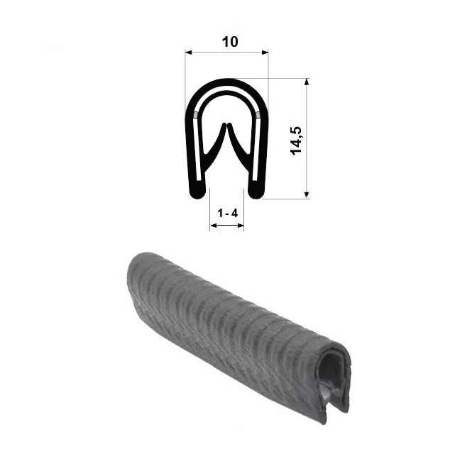 Pryžový profil U Pireli s kovovou výztuží v provedení PVC. Profily z PVC 78°Sh A mají vysokou odolnost.Profily můžeme spojit lepením nebo vulkanizací. Rozměry dle ISO 3302-1 E2.Použití: těsnění dveří, oken, kabin, kapot, rozvodných skříní nebo klapek. Vhodné rozvěž pro těsnění karavanů, zemědělských a stavebních strojů v automobilovém, energetickém či stavebním průmyslu.Výhody: tento druh těsnění díky integrované kovové výztuži drží velmi dobře na hraně plechu.