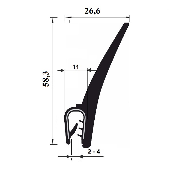 Pryžový profil U Pireli s kovovou výztuží v provedení PVC. Použití: Pro těsnění dveří, oken, kabin, zemědělských, stavebních strojů, automobilů nebo karavanů. Těsnění drží díky kovové výztuži. Profily z PVC 78°Sh A mají vysokou odolnost.Profily můžeme spojit lepením nebo vulkanizací. Rozměry dle ISO 3302-1 E2.