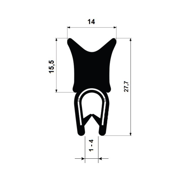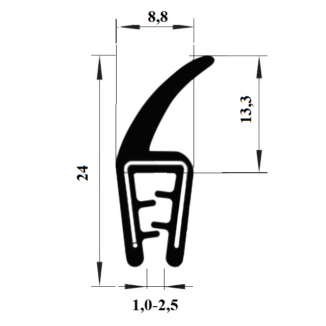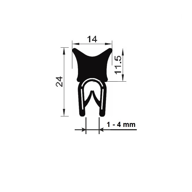 Těsnění PIRELI - pryžový profil U s horním těsněním s ocelovou výztuhou v materilálu PVC/EPDM.Použití: Těsnění dveří, oken, kabin, kapot nebo rozvodných skříní, vhodné pro těsnění automobilový, energetický a stavební průmysl.Těsnění díky integrované ocelové výztuži drží velmi dobře na hraně různých typů strojírenských výrobků.Vysoká odolnost: UV záření, ozónu, povětrnostním vlivům, kyselinám nízkých koncentrací, alkoholu, louhům.Mírná odolnost: Aromatické uhlovodíky, benzíny, oleje, koncentrované kyseliny.Rozměry dle ISO 3302-1 E2.