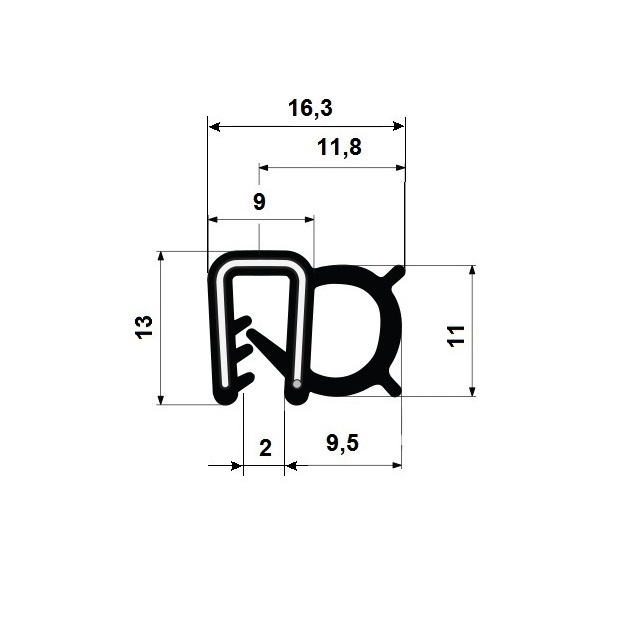 Těsnění PIRELI - pryžový profil U s bočním těsněním s ocelovou výztuhou.Použití: Těsnění dveří, oken, kabin, kapot nebo rozvodných skříní, vhodné pro těsnění automobilový, energetický a stavební průmysl.Těsnění díky integrované ocelové výztuži drží velmi dobře na hraně různých typů strojírenských výrobků.Vysoká odolnost: UV záření, ozónu, povětrnostním vlivům, kyselinám nízkých koncentrací, alkoholu, louhům.Mírná odolnost: Aromatické uhlovodíky, benzíny, oleje, koncentrované kyseliny.Rozměry dle ISO 3302-1 E2.
