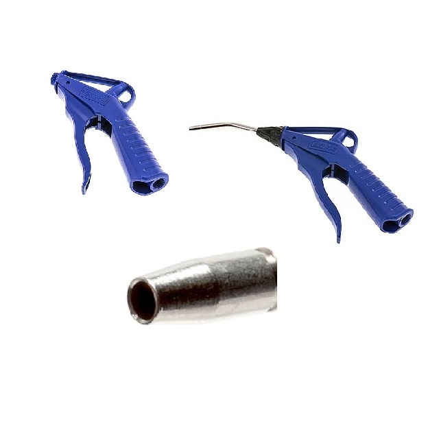 Ofukací pistolí je možné proud vzduchu zvlášť jemně dávkovat. Výhody: a) široké spektrum aplikací b) pocit tepla při uchopení tělesa z umělé hmoty c) nízká hmotnost d) možnost měnit konce. Průtok vzduchu: P = 6 Bar ~ 460 l/min., P 3 Bar ~270 l/min.