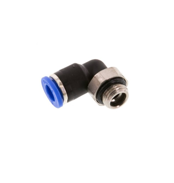 Úhlová přípojka s vnějším G závitem.Jednoruční provedení fungující na principu připojení jedním stisknutím umožňuje okamžité připojení hadic.Jednoduchý systém spojování PA, PU a PE hadic pro automatizaci a rozvody vzduchu. Tato řada je určena pro méně náročné aplikace.