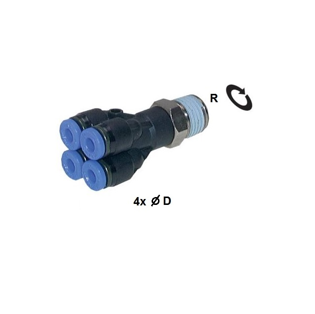 PWT4-Y144; Provozní tlak (bar) 20, Připoj. závit 1x R1/4", D.* (mm) 4xD=4, Hmotnost (kg) 0,22, Velikost [modul] ne