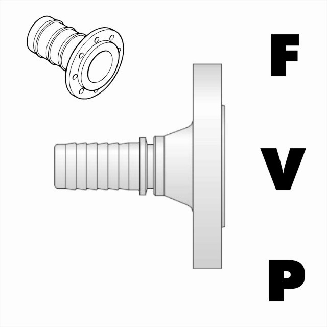 VariantyFVP013; Provozní tlak (bar) 16, Počet otvorů příruby 4, Průměr otvoru pro šrouby 14, Roztečná kružnice 65, Hmotnost (kg) 0,7, Určeno na hadici [mm] 13