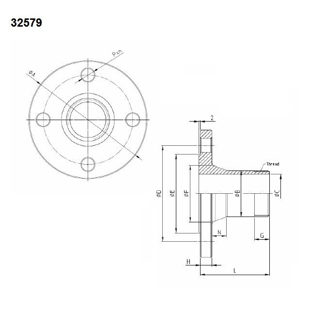 RFVG050AG2-L109/SS; Provozní tlak (bar) 16 Bar, Vnější závit G 2", DN (mm) 50, Délka nátrubku (mm) L=109, Hmotnost (kg) 3,26
