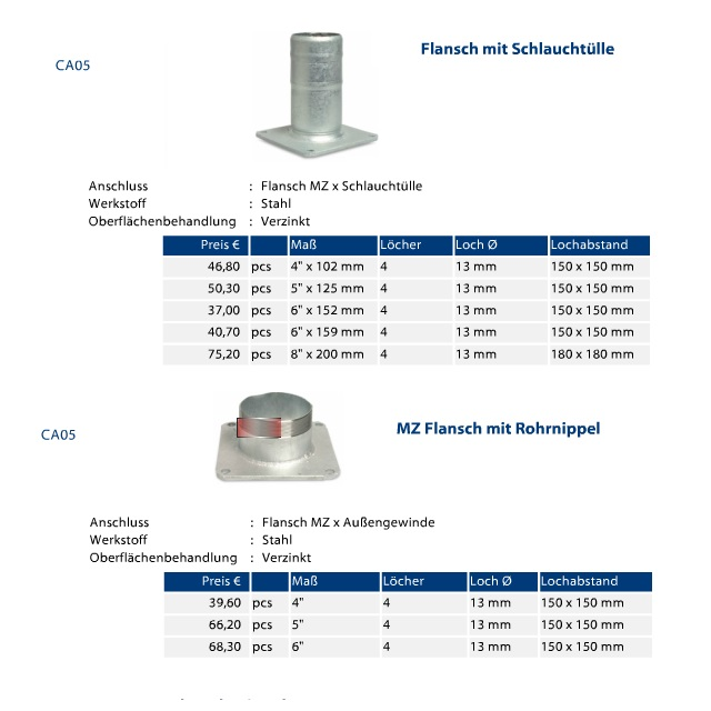 Fekální nátrubek s čtvercovou přírubou, pozink