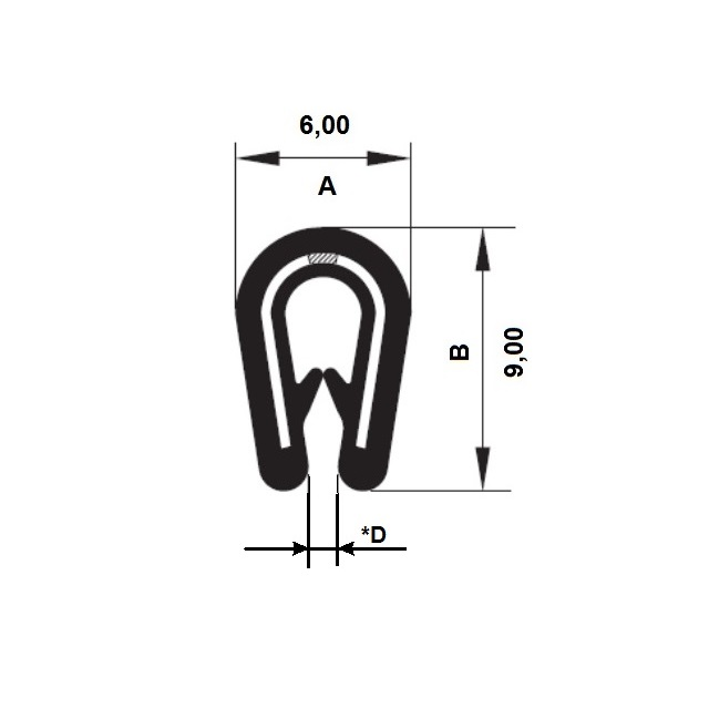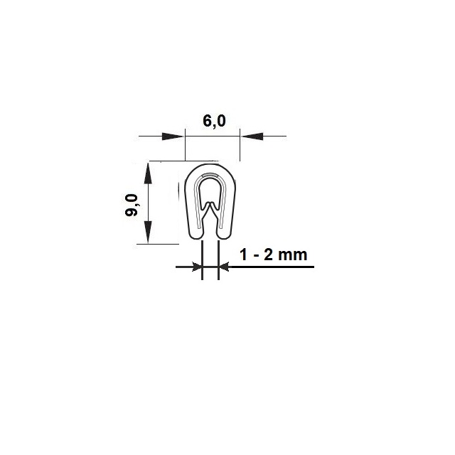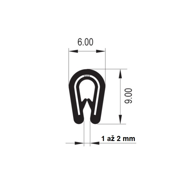 Profil s kovovou výztuží, čelní 6x9 mm, (-25°/+70°C), pro plech 1- 2 mm