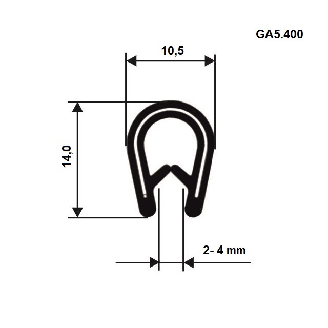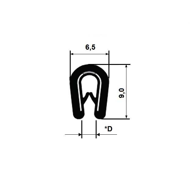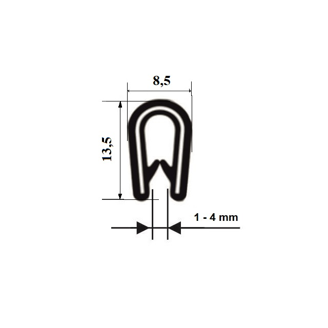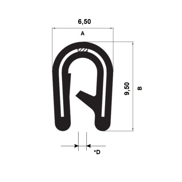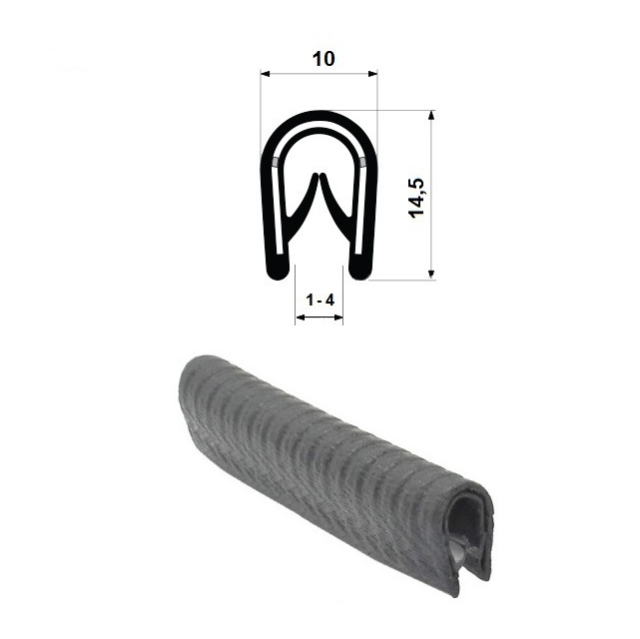 Profil s kovovou výztuží EPDM -40/+100°C, plech 1-2 (2-4) mm