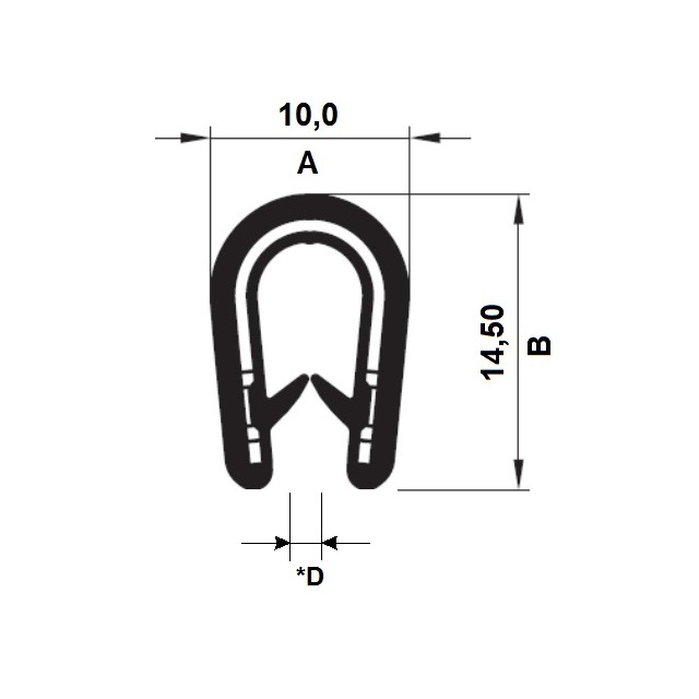 Profil s kovovou výztuží 10 x 14,5 mm (-25°/+70°C), plech 1-4,0 mm