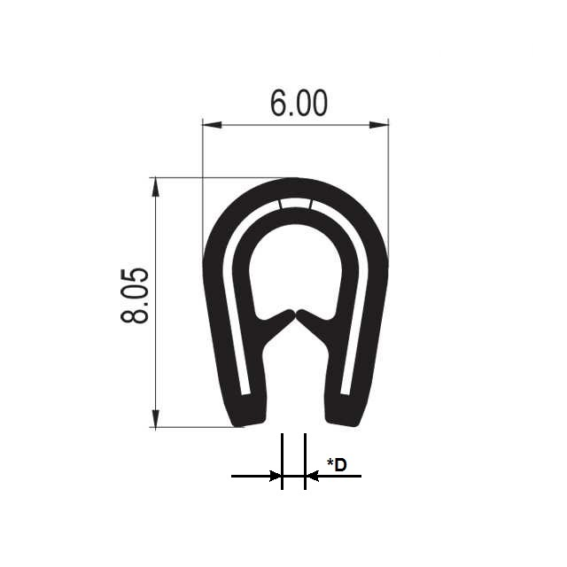 Profil s kovovou výztuží 5,5 x 8 mm (-25°/+70°C), plech 0,8- 1,5 mm