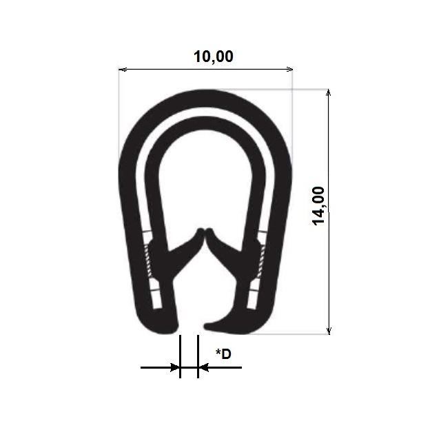 Profil s kovovou výztuží, čelní 10x14 mm, (-25°/+70°C), plech 1- 4 mm