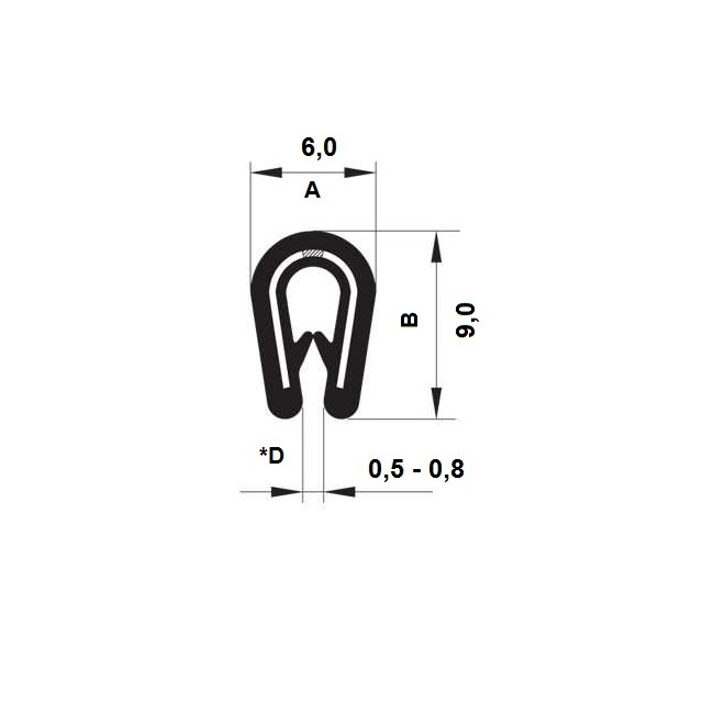 Profil s kovovou výztuží 6,0 x 9,0 mm (-25°/+70°C), plech 1-2,0 mm