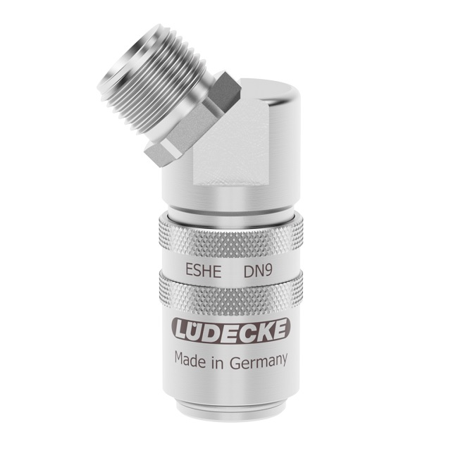 Nerezová rychlospojka DN 9 s vnějším úhlovým závitem 45° s/bez ventilu