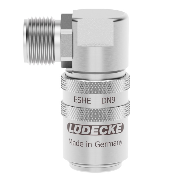 Nerezová rychlospojka DN 9 s vnějším úhlovým závitem 90° s/bez ventilu