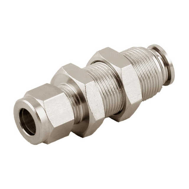Panelová spojka, přechodka Push-In a trubek, celokovová, 20 bar