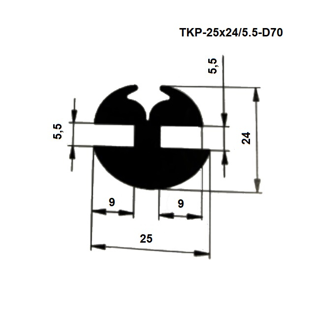 TKP-25x24/5.5-D70; Vnitřní průměr (mm) 5,5, Hmotnost (kg) 0,451, Kóta B 24, Kóta A 25, Výška