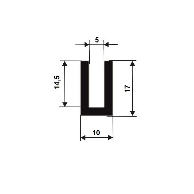 Tvar "U" 17x10/5mm, pryž EPDM, -40°C/+100°C