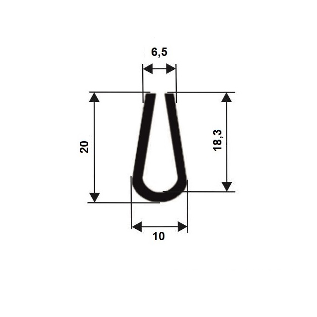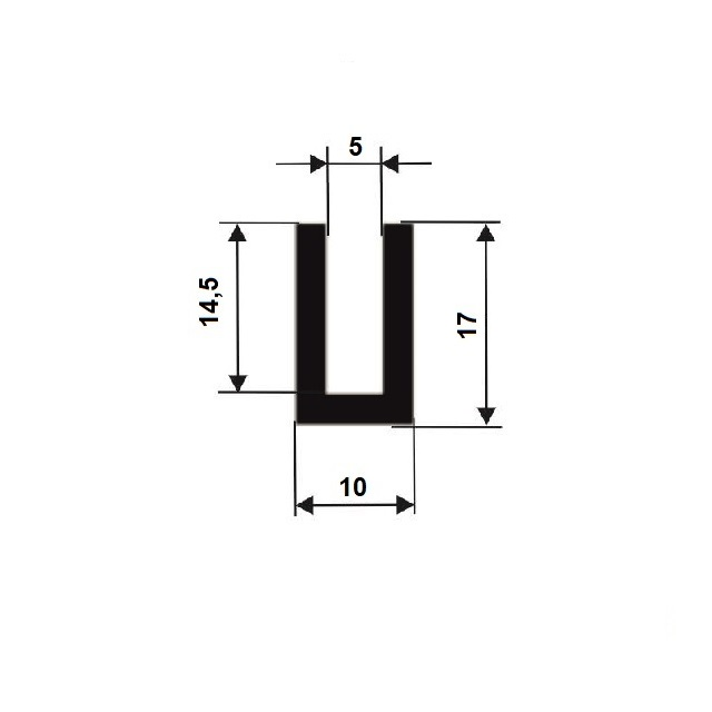 Kompaktní pryžový profil ve tvaru U z materiálu EPDM.EPDM - odolný povětrnostním podmínkám.