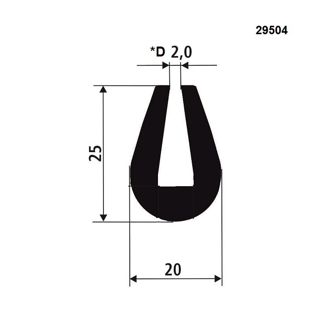 Tvar "U" 20x25/U6/2 mm, pryž EPDM, -40°C/+100°C