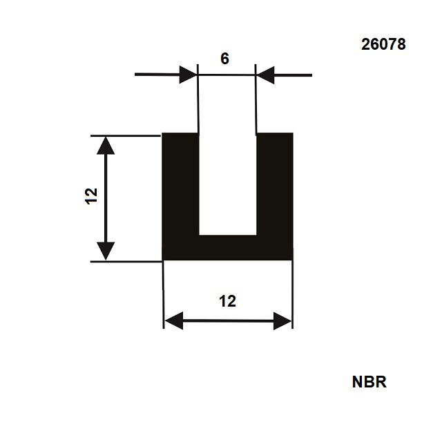 Kompaktní pryžový profil ve tvaru U z materiálu NBR (odolný olejům a mastnotám).Neporézní profil je standardně nabízen z materiálu NBR na poptávku např. z EPDM, odolný chemicky apod.