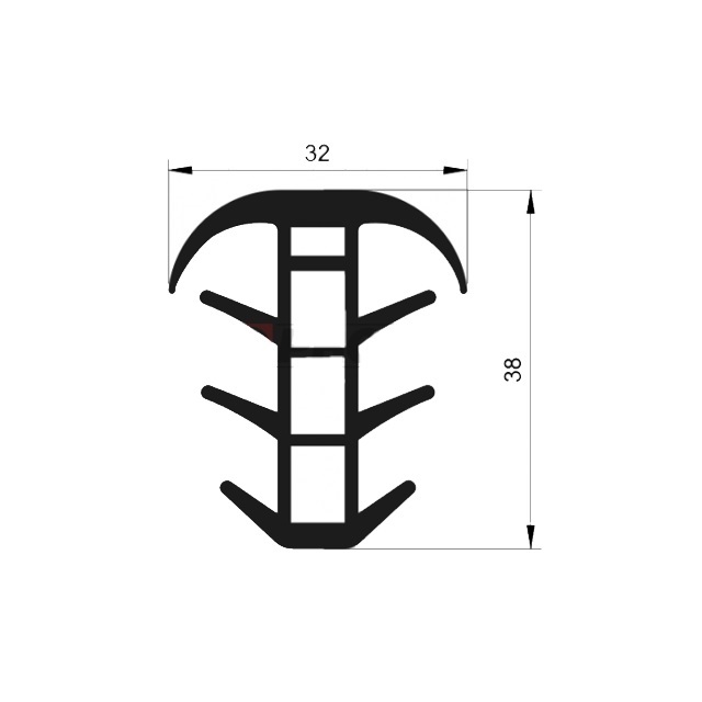 Kompaktní pryžový profil tvaru "T" pro efektivní utěsnění mezer, spár nebo otvorů.