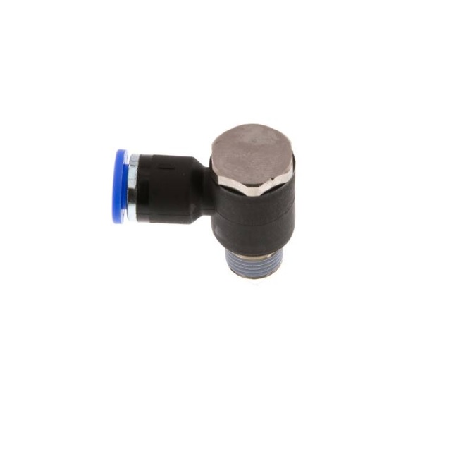 Úhlová 90° spojka s kuželovým závitem, vývod pro hadice venkovního průměru D.