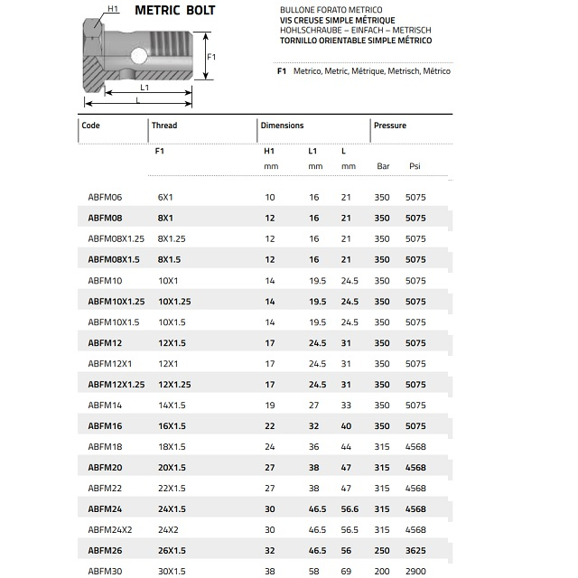růtokový šroub singl pro hydrauliku, metrický závit, bez těsnění.