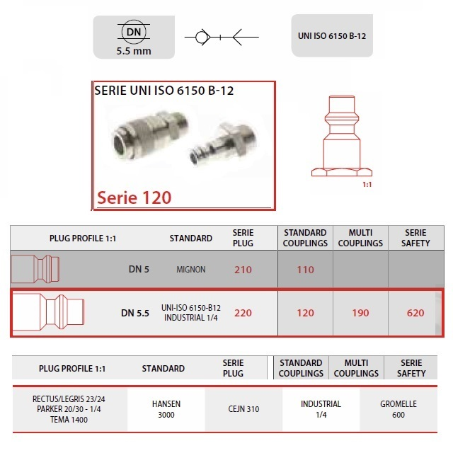 RYCHLOSPOJKA AG Série 120 "ITAL" Dn5,5 UNI ISO 6150 B-12