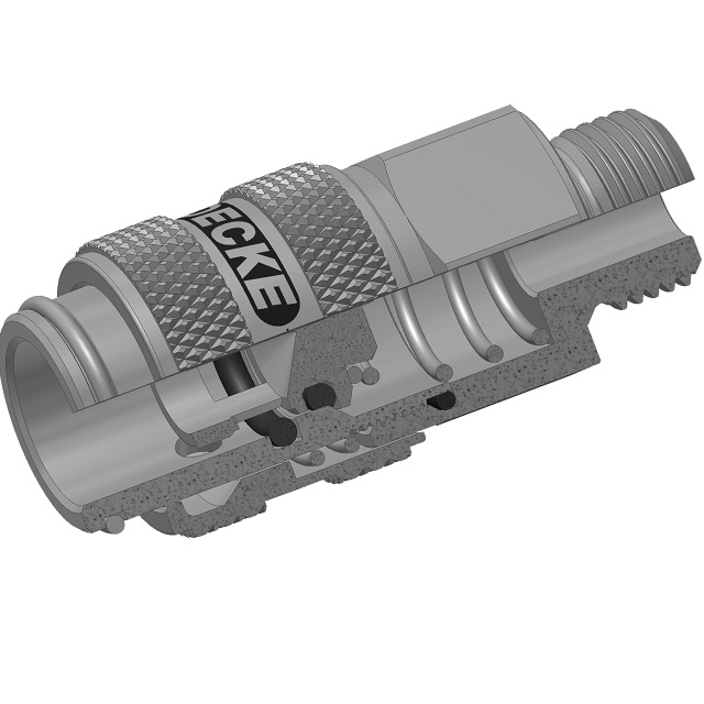 Pro přívod stlačeného vzduchu při zvýšené čistotě a hygienických předpisech nebo při dopravě různých médií (plyny, chemikálie, laky, farmaceutika). Několik oblastí použití ve farmacii, chemickém průmyslu, lékařské technice, potravinářském průmyslu, čistých prostorách i pro sofistikované pneumatické aplikace.Jednostranně uzavíratelné provedení vyrobené z nerezové oceli 1.4305.Materiál: Těleso, objímka, tělo ventilu, ventil, kuželka: nerezová ocel 1.4305. Pružiny, pojistný kroužek: nerezová ocel 1.4310. Kuličky: nerezová ocel 1.3541, těsnění FKM (Viton).