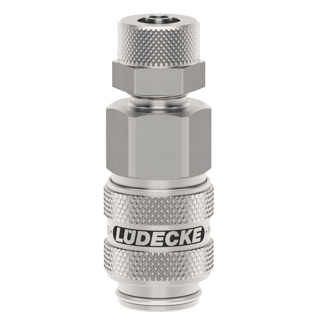 Pro přívod stlačeného vzduchu při zvýšené čistotě a hygienických předpisech nebo při dopravě různých médií (plyny, chemikálie, laky, farmaceutika). Několik oblastí použití ve farmacii, chemickém průmyslu, lékařské technice, potravinářském průmyslu, čistých prostorách i pro sofistikované pneumatické aplikace.Jednostranně uzavíratelné provedení vyrobené z nerezové oceli 1.4305.Materiál: Těleso, objímka, tělo ventilu, ventil, kuželka: nerezová ocel 1.4305. Pružiny, pojistný kroužek: nerezová ocel 1.4310. Kuličky: nerezová ocel 1.3541, těsnění FKM (Viton).