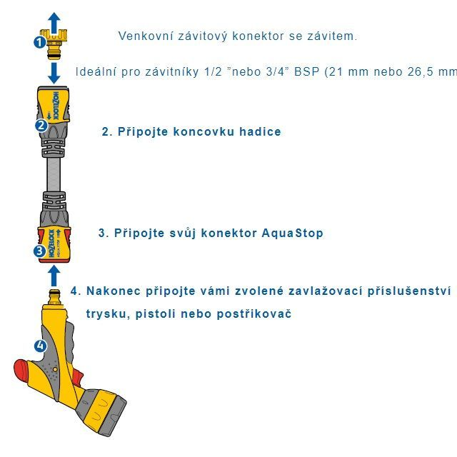 Rychlospojka Hozelock pro hadici 12,5 mm a 15 mm, ideální pro koncovku hadice s odbočkou.Spojovací čepy mají průměr 15,9 mm, jde o systém GERDENA.Díky dvěma dotykovým plochám je tento konektor snadno použitelný, i když je mokrý.Pružný konec hadice snižuje namáhání v místě připojení, aby nedocházelo k zauzlování, bobtnání a úniku hadice. Připojuje se rychle a bezpečně.Technický termoplast, který překlenuje mezeru mezi plasty a kovy a jeho jedinečnými montážními body.Připojení k baterii je zaručeno, že zůstane bezpečné až do 10 barů.Eliminuje zalomení hadice, otoky hadice a netěsnosti hadice - v místě připojení s armaturou díky důmyslné pružné koncovce hadice na matici.