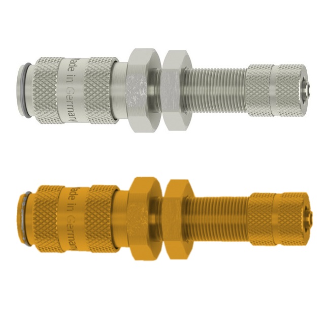 Spojky nejmenších rozměrů DN 2,7 z poniklované mosazi nebo nově z také z červené mosazi MS 58.Změna kódu u výrobce Lüdecke - nově pro niklované druhy ESMCN !Použití v oblasti pneumatice, v řídící, měřící a regulační technice.Na zažádání také k dispozici s červeným nebo modrým eloxovaným hliníkovým tělem spojky.
