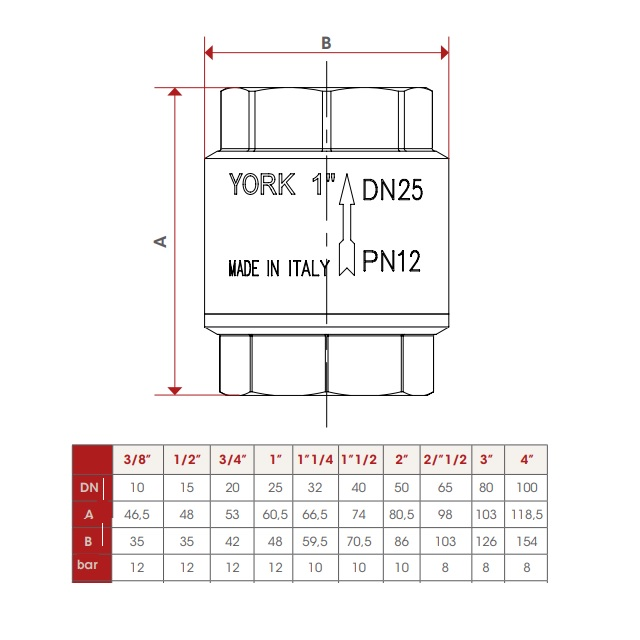 VariantySK-G1/2-V1-MS-213; Provozní tlak (bar) 12, Vnitřní závit 1/2", DN (mm) 10, Hmotnost (kg) 0,2, Kóta B 58, Kóta A 34